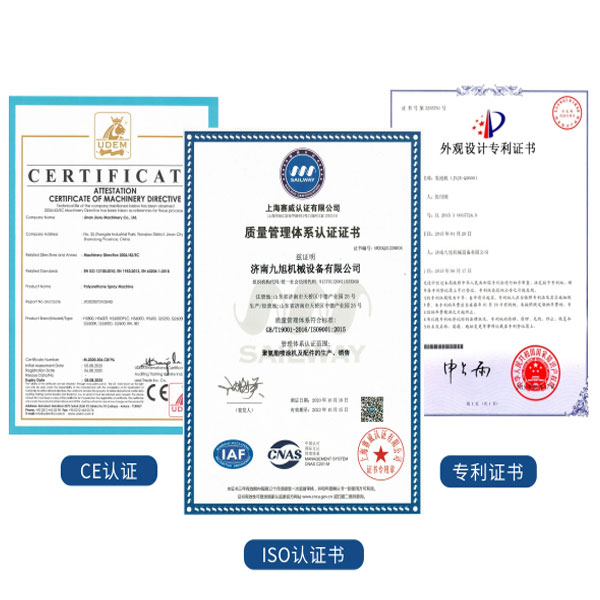 山東九旭機(jī)械科技有限公司歷經(jīng)十幾年的發(fā)展,已成長(zhǎng)為聚氨酯設(shè)備行業(yè)頗具實(shí)力的設(shè)備制造業(yè)之一。企業(yè)主要產(chǎn)品:聚氨酯高壓噴涂機(jī)、聚氨酯發(fā)泡機(jī)、聚氨酯噴涂機(jī)、聚脲設(shè)備、聚氨酯發(fā)泡設(shè)備、聚氨酯發(fā)泡機(jī)等關(guān)于設(shè)備配件(聚氨酯高壓噴槍、槍嘴、加熱管道、料塊、摩擦副、增壓泵、混合式、提料泵等)也是堅(jiān)持最好的質(zhì)量服務(wù)用戶(hù),并承接:外墻保溫、冷庫(kù)保溫發(fā)泡等工程。山東九旭機(jī)械科技有限公司已通過(guò)ISO9001:2015質(zhì)量管理體系認(rèn)證和國(guó)家高新技術(shù)企業(yè)認(rèn)證,目前山東九旭機(jī)械設(shè)備已領(lǐng)跑中國(guó)聚氨酯設(shè)備行業(yè),成為廣大客戶(hù)之首選。