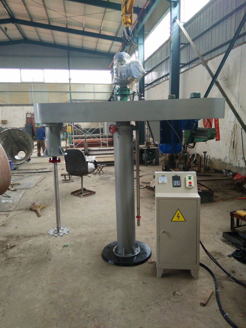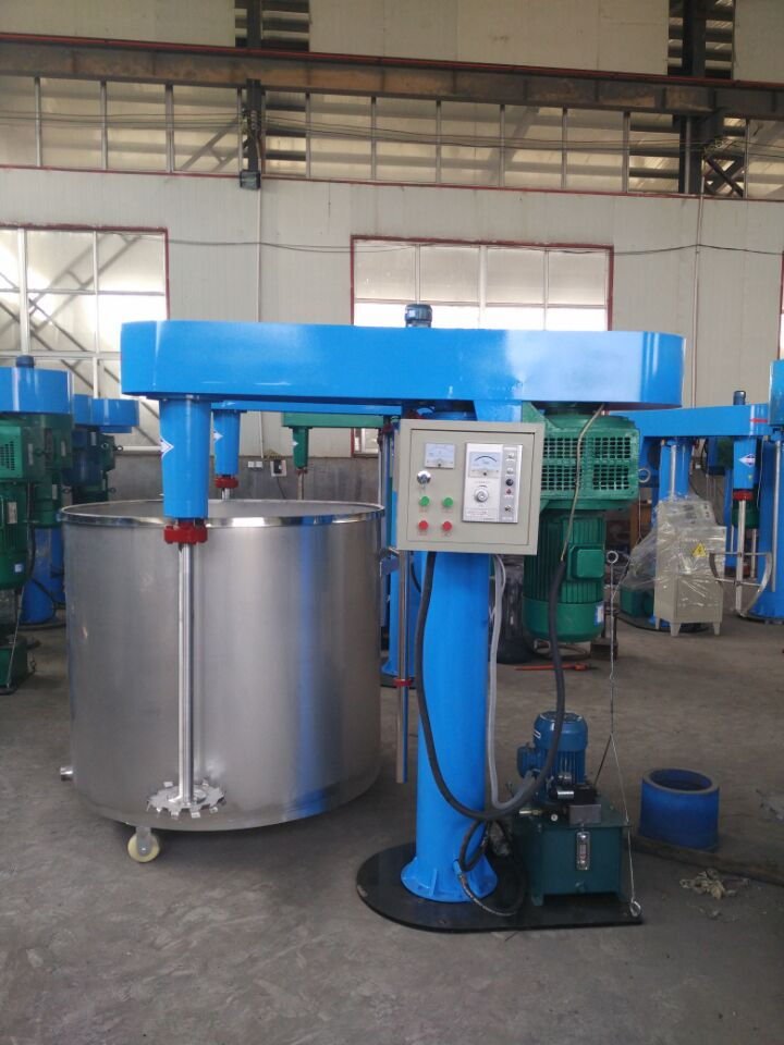 防爆變頻分散機分機械升降和液壓升降兩種,由機械系統(tǒng)、液壓系統(tǒng)、主傳動、攪拌系統(tǒng)、導向機構、電控箱五部分組成,各部分結構緊湊、合理。分散盤型式:平盤鋸齒式、三義槳式、碟式、其它形式。分散機的分散盤下方呈層流狀態(tài),不同流速的漿料層互相擴散,起到分散作用。高速分散機具有液壓升降、360度回轉、無級調(diào)速等多種功能。可同時配置2-4只容器,液壓升降行程1000㎜、360度回轉功能能更好的滿足一機多用,能夠在很短的時間內(nèi)從一個缸變換到另一個缸進行作業(yè),分散機大大的提高了工作效率,同時也降低了人工勞動強度。