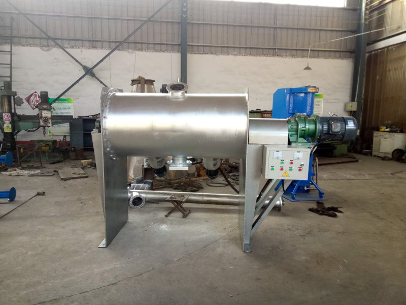 臥式犁刀混合機(jī)廣泛應(yīng)用于化工、涂料、醫(yī)藥、食品、飼料、燃料、冶金、礦山等行業(yè)的固-固(即粉體內(nèi)添加液體)混合,以及濕造粒、干燥、濃縮等復(fù)合工藝。臥式犁刀混合機(jī)是一種新型、高效粉體混合設(shè)備,其結(jié)構(gòu)主要由傳動部分、臥式筒體、犁刀組軸、飛刀組、出料閥、噴液裝置等組成。