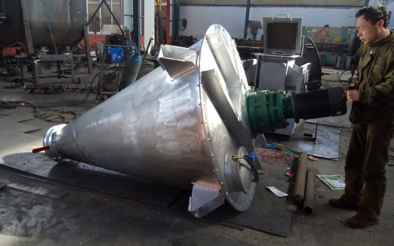 雙螺旋錐形混合機(jī)是集日本懸懸臂單螺旋和國(guó)內(nèi)“SLH”雙螺旋錐形混合機(jī)之優(yōu)點(diǎn)的一種新型混合設(shè)備。本設(shè)備可廣泛應(yīng)用于化工、醫(yī)藥、化肥、染料、冶金,礦山、食品、味精、飼料等行業(yè)的固-固(即粉體與粉體)混合。固-液(即粉體內(nèi)添加液體)混合。本設(shè)備對(duì)混合物適應(yīng)性強(qiáng),對(duì)熱敏性物料不會(huì)產(chǎn)生過(guò)熱現(xiàn)象,對(duì)顆粒物料不會(huì)壓饋和磨碎,對(duì)比重懸殊和粒度不同的物料組成的混合,不會(huì)發(fā)生分層離析現(xiàn)象,對(duì)粗粒、細(xì)粒和超細(xì)粉等各種顆粒、纖維或片狀物料的混合,也有較好的適應(yīng)性。