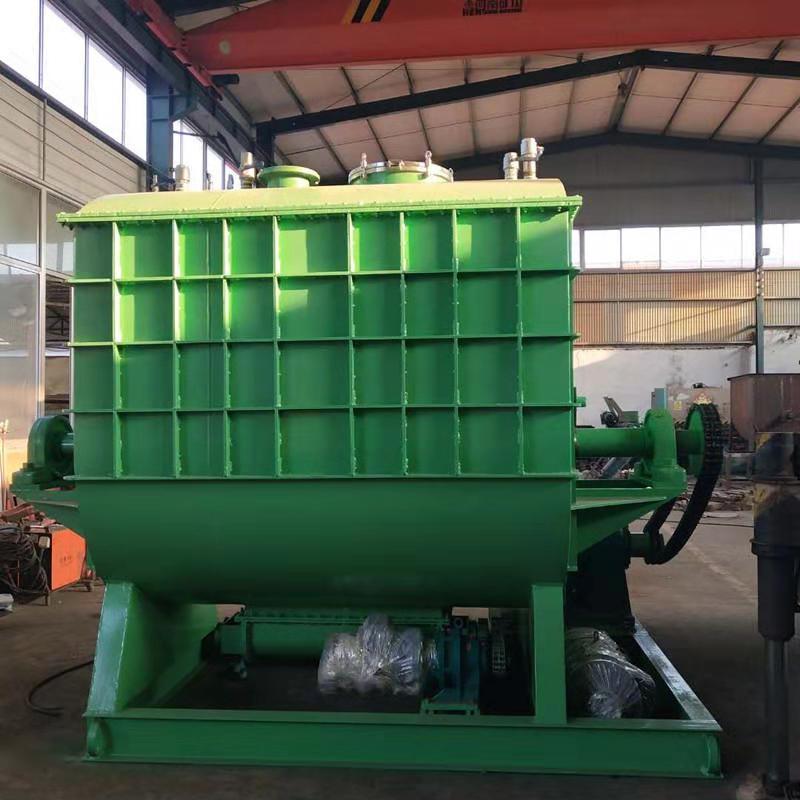 臥式螺帶混合機粉體物料采用氣動大開門結(jié)構形式,具有卸料快、無殘余等優(yōu)點;高細度物料或半流體物料采用采用手動蝶閥或者氣動蝶閥??膳渲眉訜峄蚶鋮s夾套。加熱方式有電加熱和導熱油加熱兩種方式。冷卻工藝可直接向夾套內(nèi)注入冷卻水,夾套換熱面積大,冷卻速度快。小型號混合機采用減速機直聯(lián)方式,結(jié)構簡單,運行可靠度高,維護方便。大型號混合機采用皮帶輪帶動擺線減速機驅(qū)動,皮帶傳動的彈性連接有在超載時保護傳動部件的優(yōu)勢。