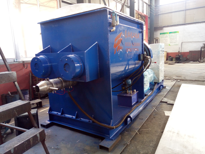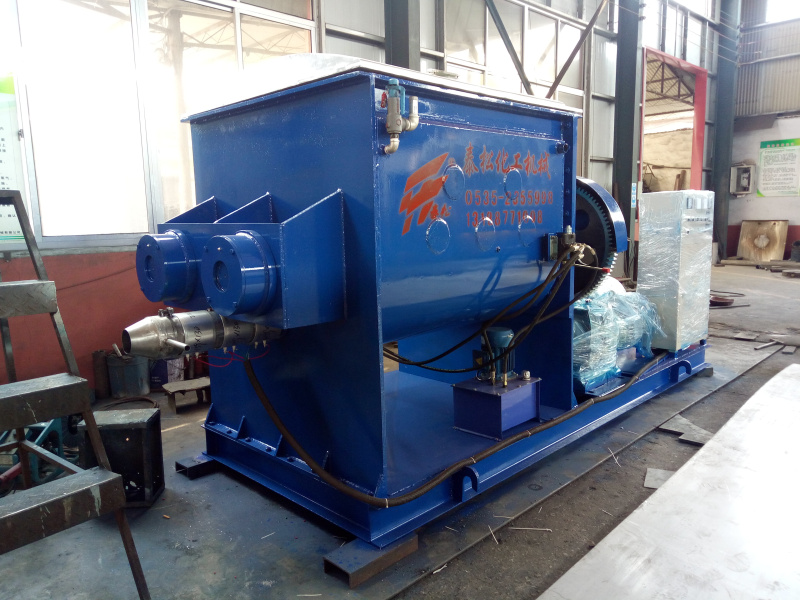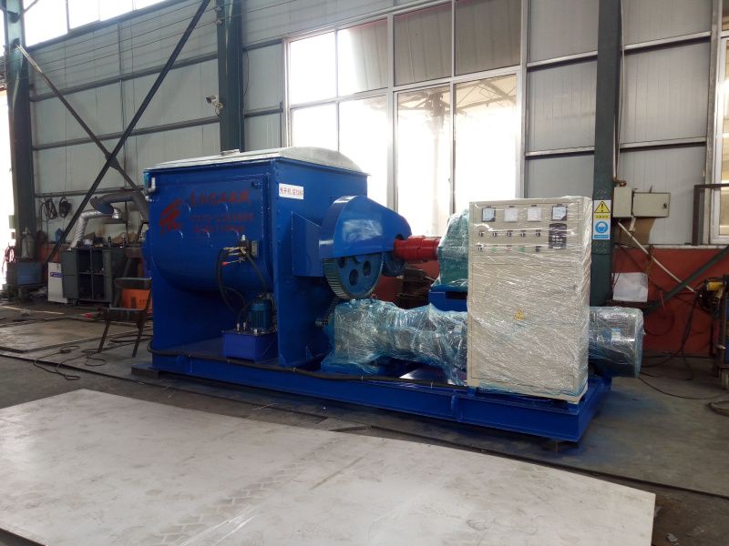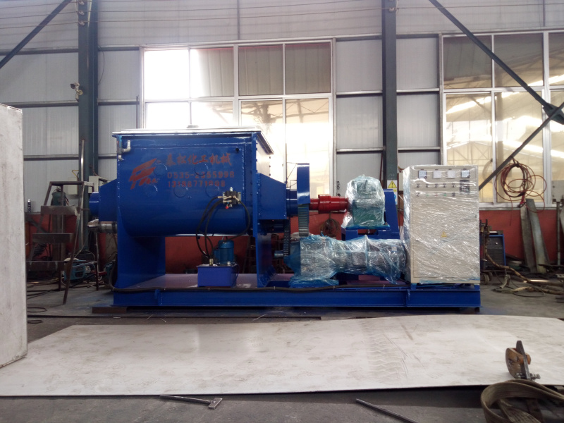 該種捏合機的出料經(jīng)螺桿把物料輸送出來,在操作過程中為了使螺桿中的物料處分得到充分攪拌,螺桿減速機和捏合機主電機應(yīng)同步運轉(zhuǎn),但旋轉(zhuǎn)方向應(yīng)與出料的旋轉(zhuǎn)方向相反。捏合機內(nèi)的在充分攪拌之后,把螺桿尾部的出料堵板打開,把螺桿減速機的旋轉(zhuǎn)方向調(diào)到出料方向,向外輸送物料至輸送完畢。要及時清理粘附在螺桿及螺旋翅子上的物料,以免影響到下一道工序。